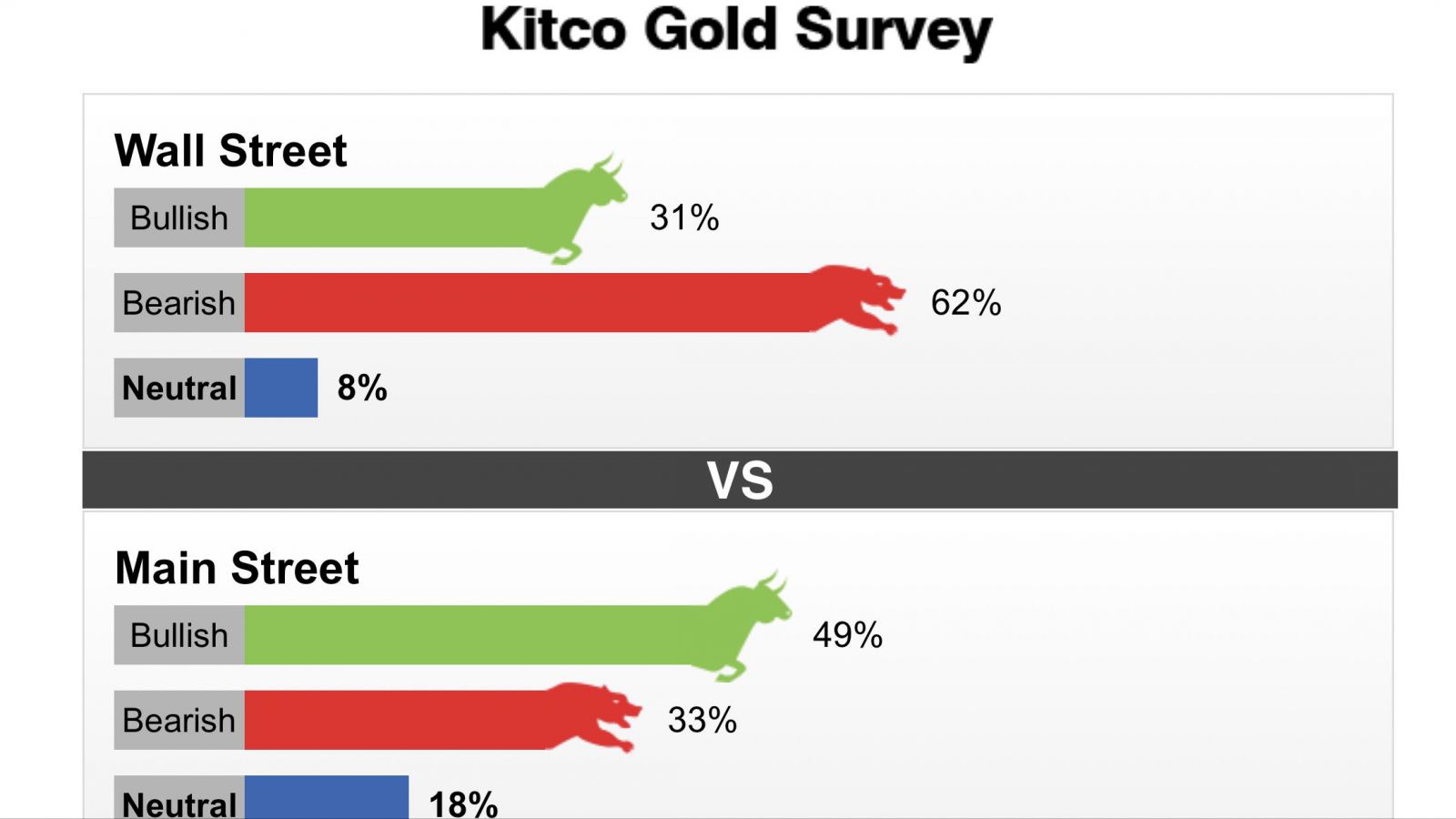 Cụ thể, cuộc khảo sát tại Wall Street cho kết quả, 62% ý kiến cho rằng giá vàng sẽ giảm, chỉ 31% dự báo giá sẽ tăng và 8% quan điểm trung lập. Còn tại cuộc khảo sát Main Street, có 49% ý kiến trả lời kỳ vọng giá vàng sẽ tăng, trong khi có 33% ý kiến dự báo giá vàng sẽ giảm và 18% cho rằng giá vàng sẽ đi ngang trong tuần tới.