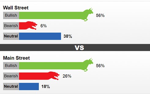 Cụ thể, trong cuộc khảo sát Wall Street, cuộc khảo sát các chuyên gia thị trường tại phố Wall cho kết quả, 56% ý kiến trả lời dự đoán giá vàng sẽ tăng trong tuần sau; 6% dự báo giảm giá, 38% ý kiến trung lập. Còn đối với cuộc khảo sát trực tuyến các nhà đầu tư (Main Street), có 56% số người trả lời cho rằng giá sẽ tăng, 26% dự đoán giá giảm, 18% dự đoán giá đi ngang.