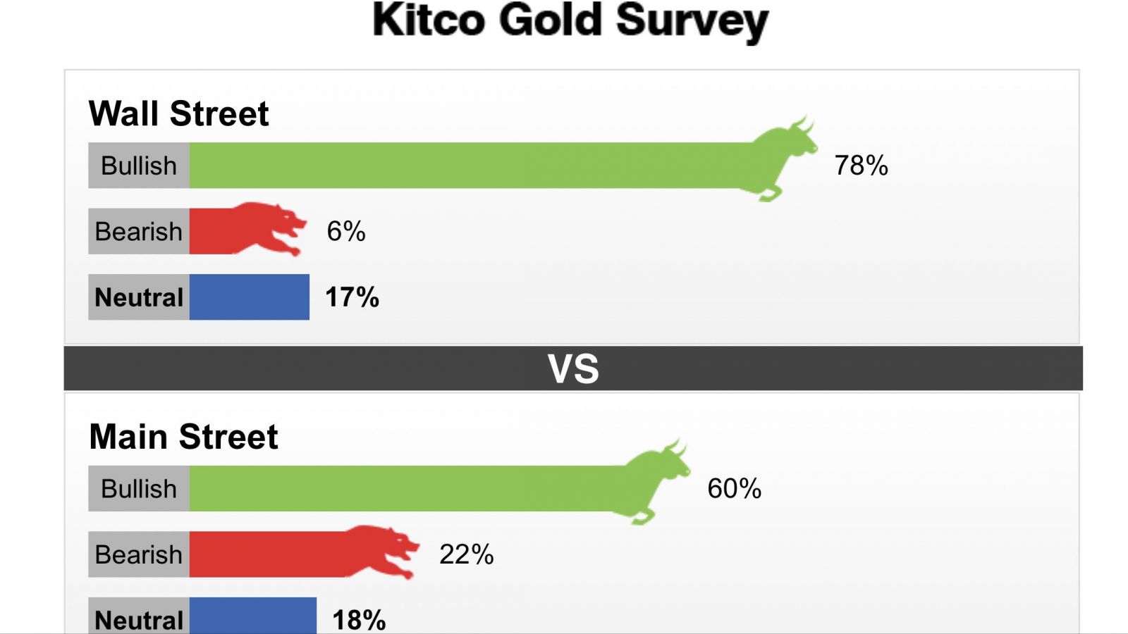 Cụ thể, cuộc khảo sát tại Wall Street cho kết quả, 78% ý kiến cho rằng giá vàng sẽ tăng, chỉ 6% dự báo giá sẽ giảm và 17% quan điểm trung lập. Còn tại cuộc khảo sát Main Street, có 60% ý kiến trả lời kỳ vọng giá vàng sẽ tăng, trong khi có 22% ý kiến dự báo giá vàng sẽ giảm và 18% cho rằng giá vàng sẽ đi ngang trong tuần tới.