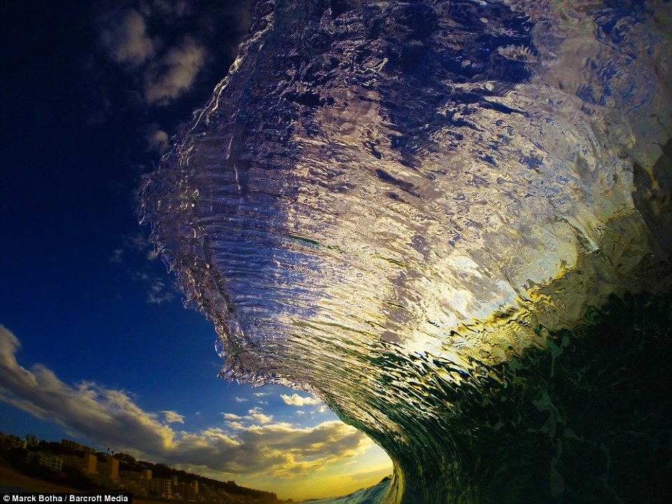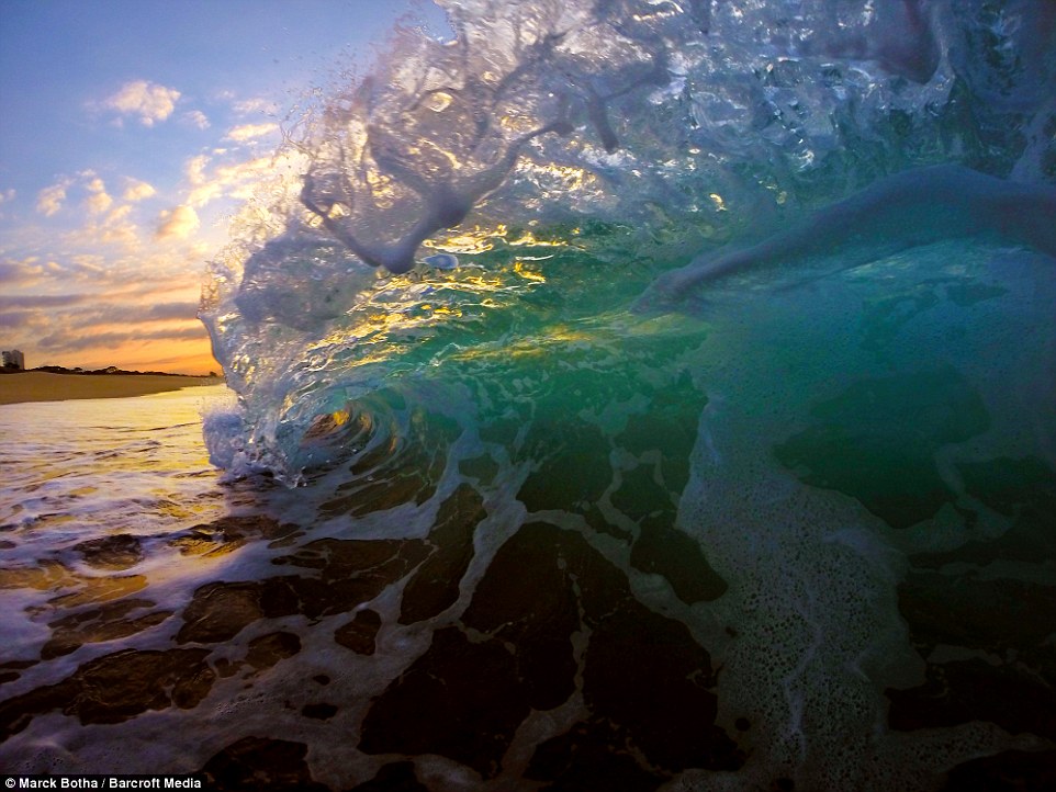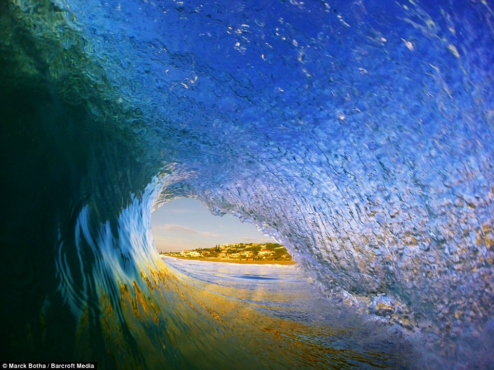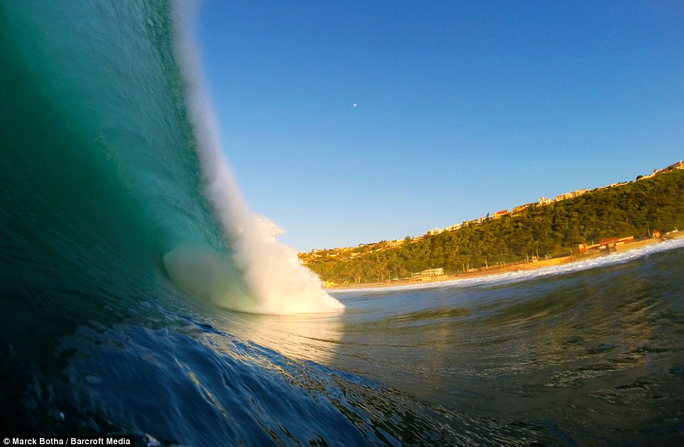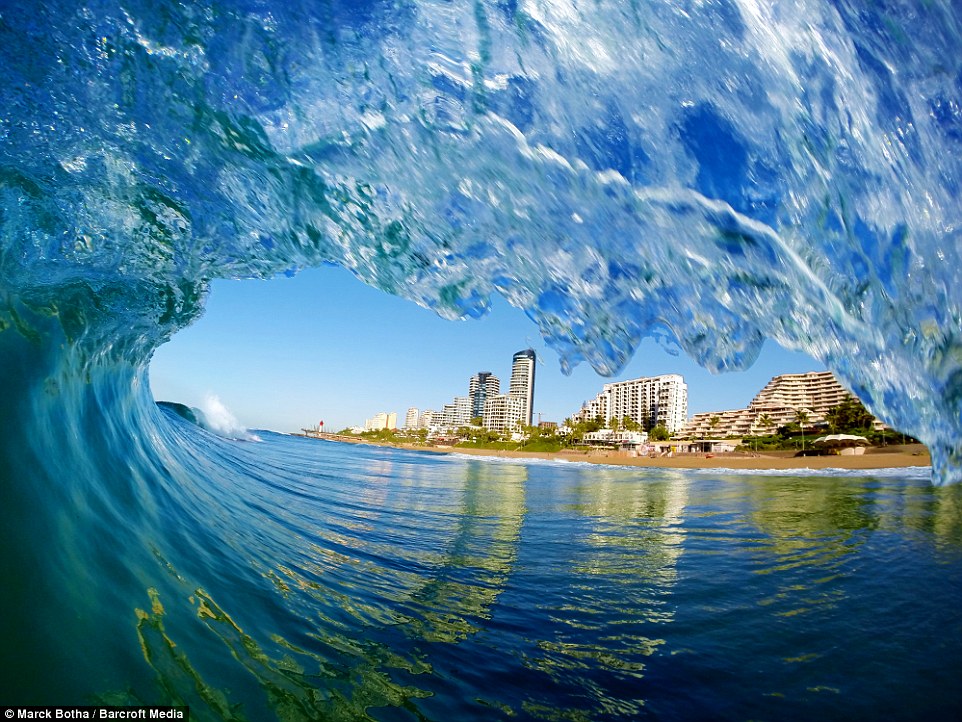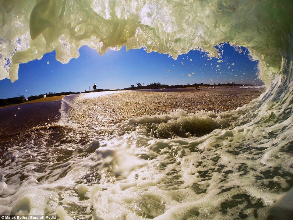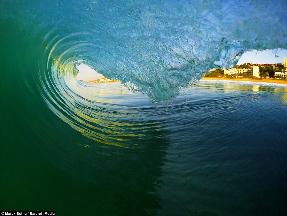 Hình ảnh ngọn sóng được Marck Botha chụp từ bên trong lòng ngọn sóng ở bờ biển của resort Umhlanga Durban.