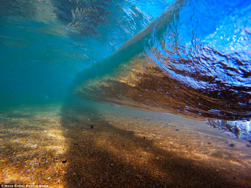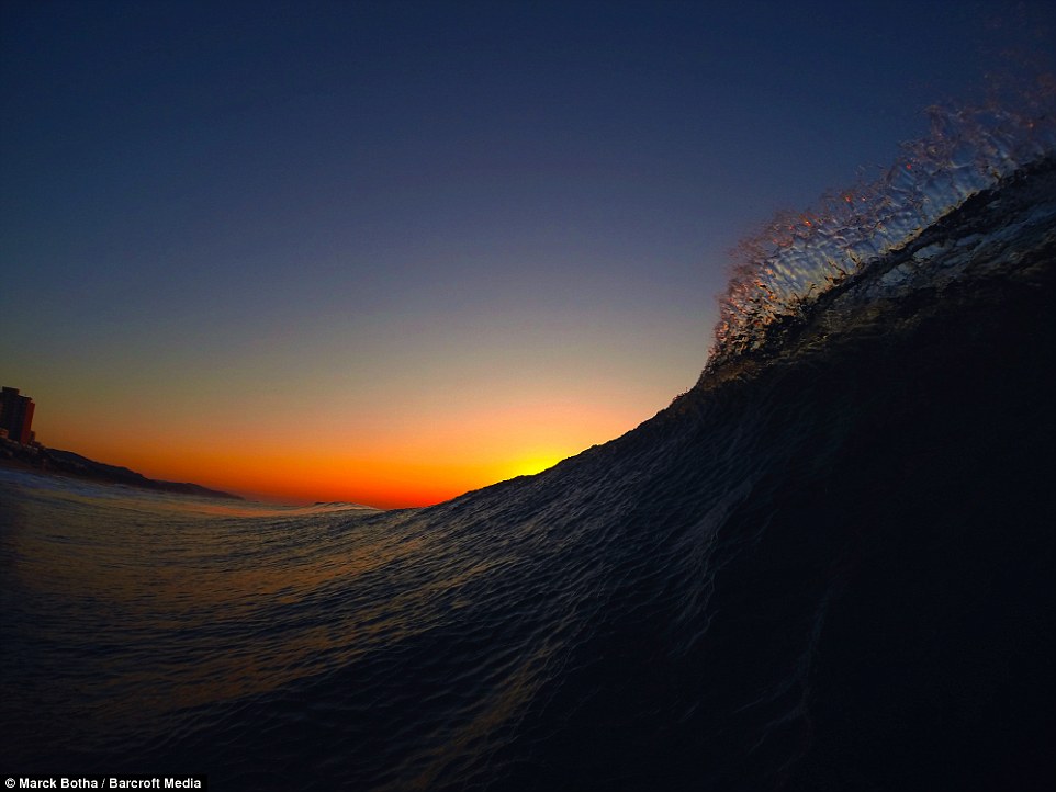 Botha bắt được hình ảnh như thế này khi chụp một con sóng vỡ, trên bờ sáng lấp lánh ánh sáng mặt trời giữa tháng Tư và tháng Bảy năm nay