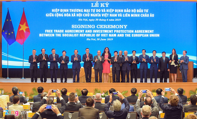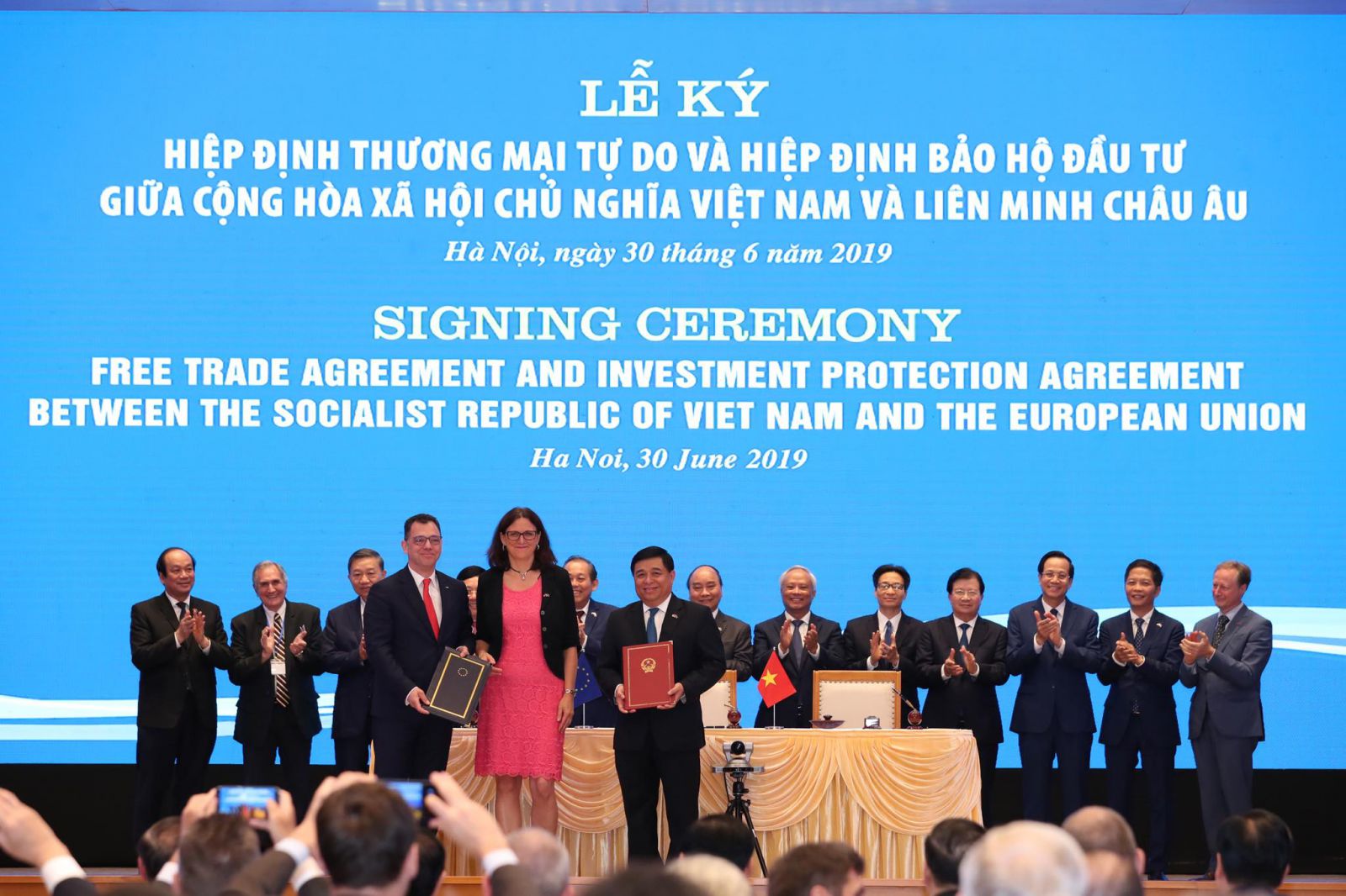 Thay mặt Chính phủ Việt Nam, Bộ trưởng Bộ Công Thương Trần Tuấn Anh đã ký hiệp định EVFTA; Bộ trưởng Bộ Kế hoạch và Đầu tư Nguyễn Chí Dũng ký hiệp định IPA.