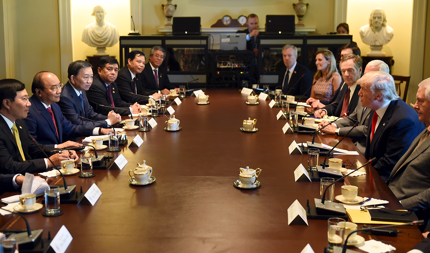 Hoan nghênh Thủ tướng Chính phủ Nguyễn Xuân Phúc và Đoàn đại biểu cấp cao của Việt Nam tới thăm chính thức Hoa Kỳ, Tổng thống Donald Trump khẳng định coi trọng quan hệ Việt Nam-Hoa Kỳ và vai trò của Việt Nam, vai trò của ASEAN tại khu vực; mong muốn quan hệ hai nước thời gian tới tiếp tục phát triển mạnh mẽ.