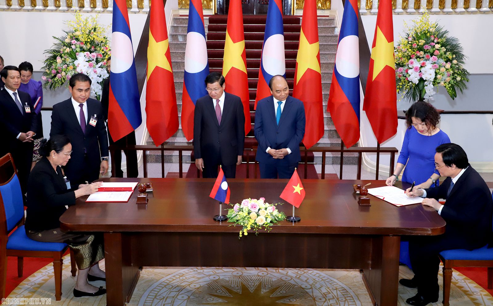 Trao đổi về quan hệ hai nước, hai nhà lãnh đạo tái khẳng định tầm quan trọng của mối quan hệ vĩ đại, đoàn kết đặc biệt giữa hai nước Việt Nam và Lào, được gây dựng và vun đắp bởi các thế hệ lãnh đạo và nhân dân hai nước, là tài sản quý giá của hai dân tộc, đồng thời tỏ vui mừng trước những bước phát triển mạnh mẽ, toàn diện của quan hệ song phương thời gian qua.