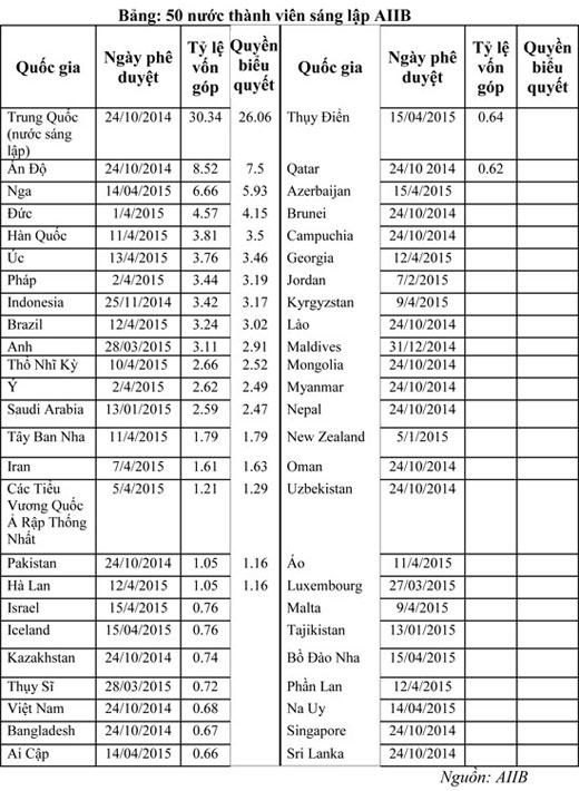 Mỹ và Nhật vẫn tỏ ý băn khoăn về cơ chế hoạt động cũng như tính minh bạch trong điều hành của AIIB nên vẫn chưa tham gia.