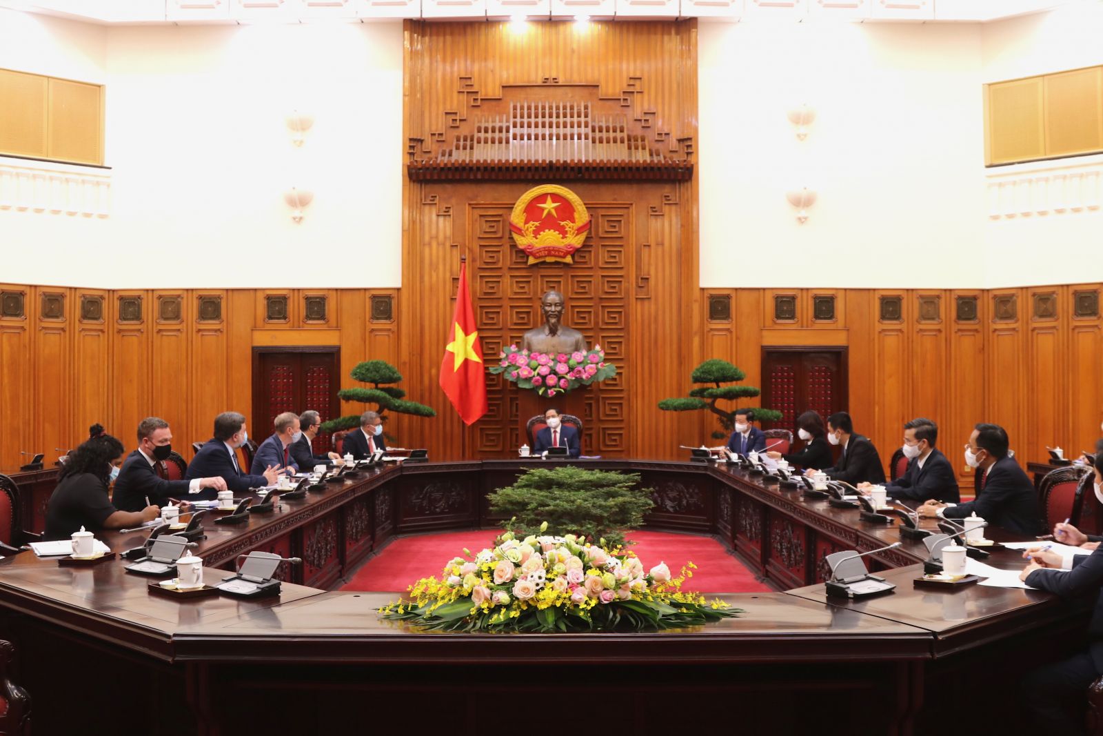 Thủ tướng Chính phủ Phạm Minh Chính hoan nghênh chuyến thăm và làm việc của ngài Bộ trưởng; đề nghị Bộ trưởng hỗ trợ thúc đẩy triển khai hiệu quả các thỏa thuận kinh tế song phương, khuyến khích các doanh nghiệp Anh đầu tư vào Việt Nam, nhất là trong các lĩnh vực Anh có thế mạnh như năng lượng sạch.