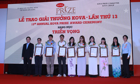 Đặc biệt, có 18 sinh viên được trao Giải thưởng KOVA – hạng mục Triển vọng (10 triệu đồng/SV). Ngoài ra, Ủy ban Giải thưởng KOVA cũng trao tặng 100 suất Học bổng KOVA (8 triệu đồng/ SV) cho các em nghị lực.