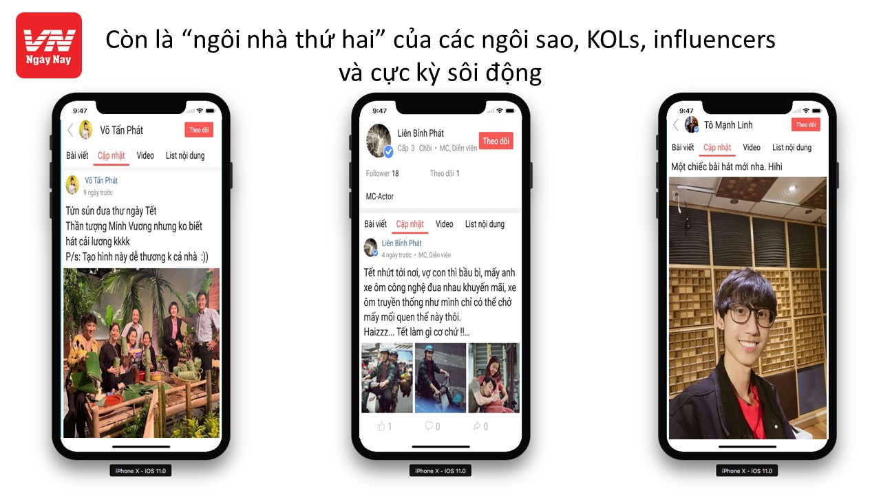 Bên cạnh sự yêu mến và ưa chuộng của người dùng, VN Ngày Nay còn nhận được sự quan tâm từ những ngôi sao trên nhiều lĩnh vực: điện ảnh, ca nhạc, thời trang, chương trình truyền hình, chương trình thực tế như Isacc, Don Nguyễn, MC Liêu Hà Trinh, Liên Bỉnh Phát, Tô Mạnh Linh (Lynk Lee)..