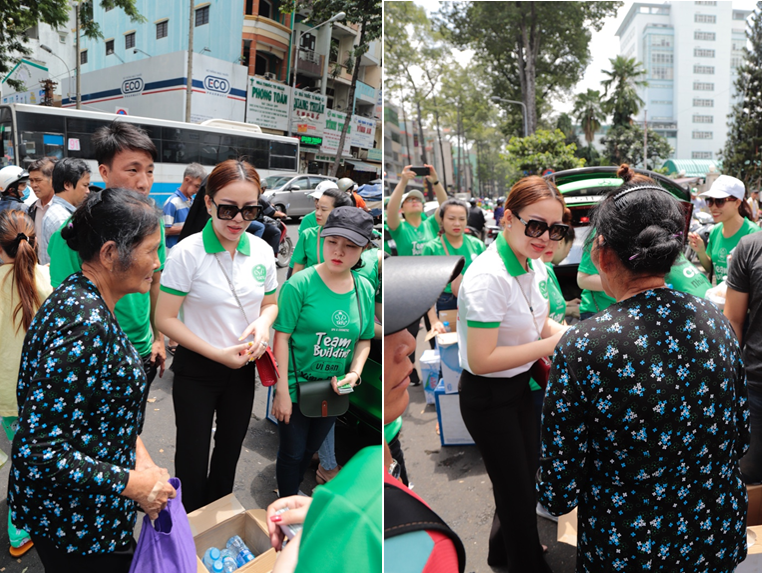 Á hậu Thái Ngân - CEO Tatu Group (áo trắng) – cũng là người đề xuất ý tưởng về việc dành tặng các phần cơm cho các bệnh nhân