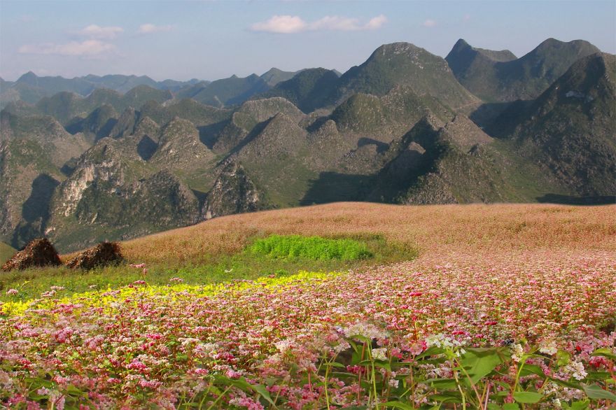 Vùng núi cao của Việt Nam là bức tranh lôi cuốn bởi màu xanh của bầu trời, màu xanh của núi rừng, ruộng nương và hoa cỏ đầy màu sắc. Hà Giang là nơi cao nhất của Việt Nam. Nhiều du khách đến đây để trải nghiệm sự khéo léo trên những cung đường đèo ngoạn mục và tận mắt thưởng thức những cảnh hùng vĩ từ điểm cao nhất của Việt Nam. Ở nơi đây, ruộng bậc thang là một phong cảnh tuyệt vời. Ruộng bậc thang không chỉ có ở Hà Giang mà còn ở những người khác như vùng cao Sa Pa, Cao Bằng, Điện Biên, Yên Bái, ... Ruộng bậc thang tương tự như một bức tranh nghệ thuật được vẽ bởi nghệ sĩ vô cùng khéo léo. Bức tranh này được thể hiện bởi các đường cong nhỏ và được bao phủ bởi màu vàng và mềm mại khi ruộng chín.