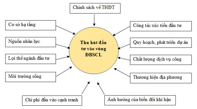 Kết quả nghiên cứu thực nghiệm tại vùng ĐBSCL cho thấy, các nhân tố ảnh hưởng đến THĐT, bao gồm 5 nhân tố có thứ tự tác động giảm dần là: Cơ sở hạ tầng vùng THĐT; Cơ chế, chính sách về THĐT; Quy hoạch và phát triển dự án kêu gọi đầu tư; Công tác xúc tiến đầu tư và Ảnh hưởng của BĐKH đến vùng dự án.