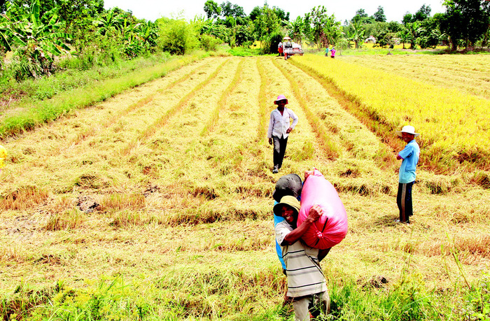 Nông dân thu hoạch lúa trên cánh đồng huyện Phong Điền, Cần Thơ