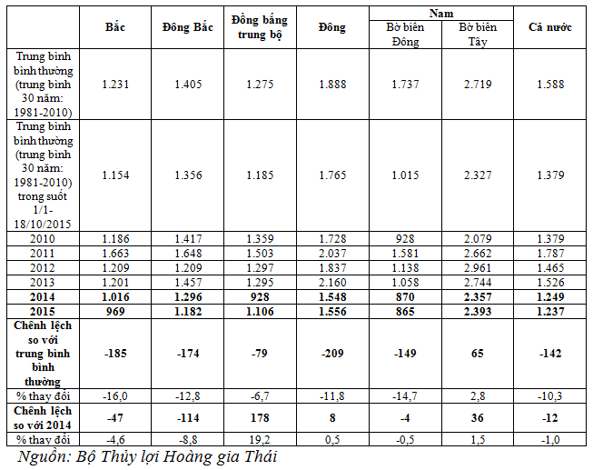 Lượng mưa dự trữ từ 1/1-18/10/2015