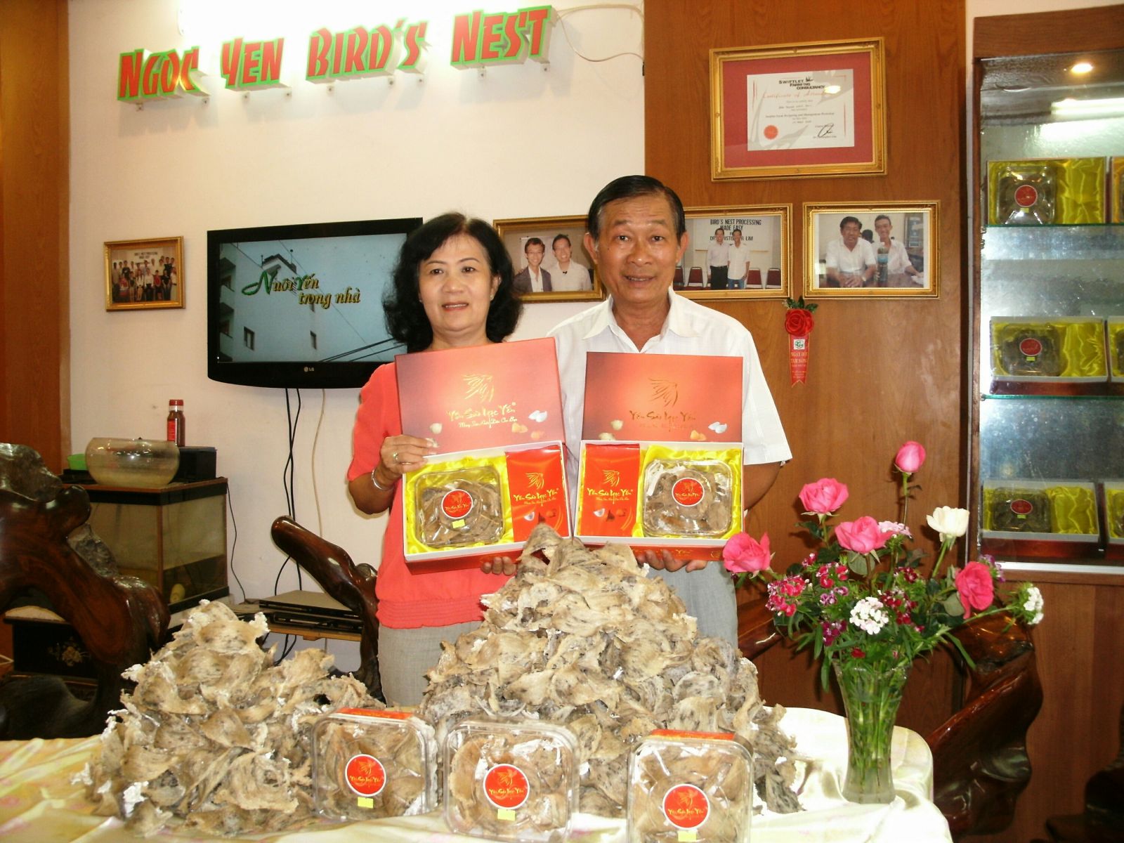 Vợ chồng ông Đoàn Văn Bình bên sản phẩm Yến Huyết Ngọc Yến