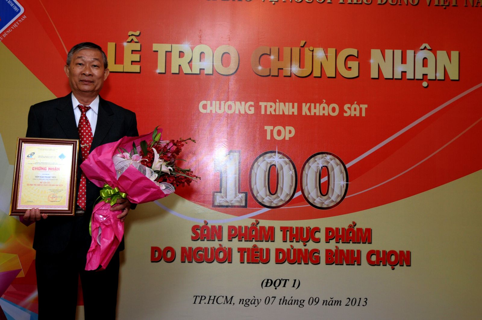 Ông Đoàn Văn Bình nhận chứng nhận Huyết Yến Ngọc Yến nằm trong Top 100 Sản phẩm thực phẩm cho người tiêu dùng bình chọn